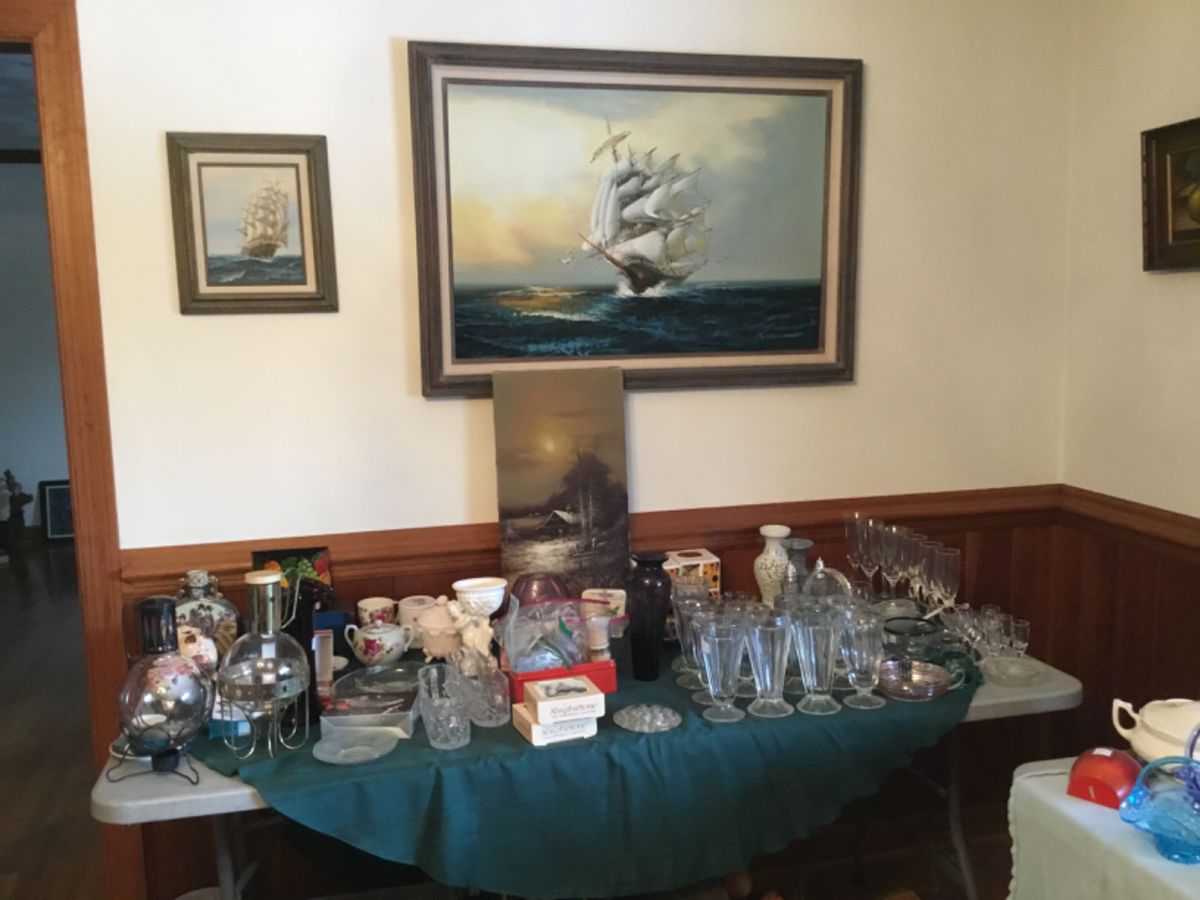 What an unusual sale! The pictures are a small representation of what all is here at this home. Full of vintage and antique items. A big out building full of fun old stuff, a huge basement full of vi take goodies and then the house again with lots of vintage and some new usable items as well. Vintage kitchen items including Pyrex, Fire King, yelloware, Beautiful pie safe, Copper pots, Sterling silver Gorham Chantilly, Enamelware, Brass fire extinguishers, vintage sleds, Pfaltzgraph Village Brown dishes, Old games and toys, Holiday items, Lots of glassware, china and pottery, Trunks, Pink Depression glass,...