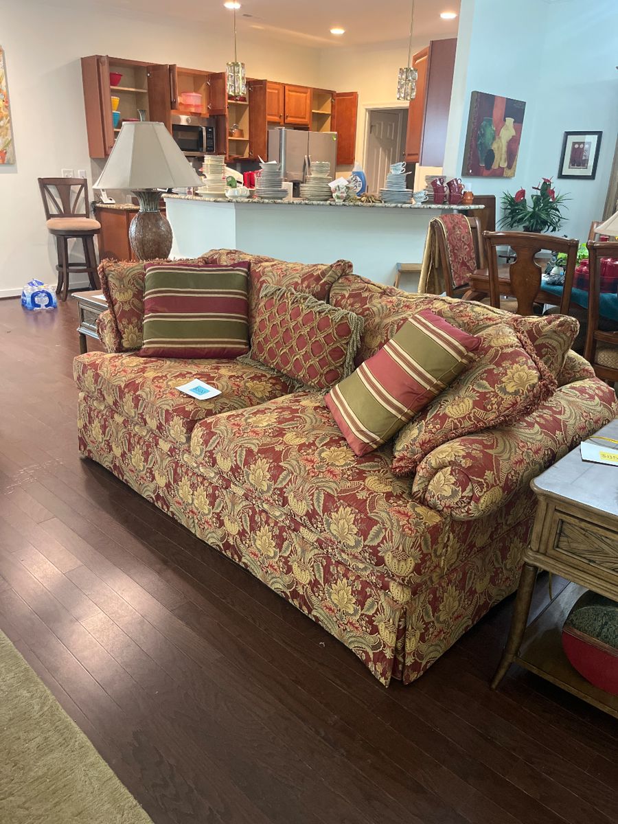 Furniture Upholstered 3-cushion sofa, Matching loveseat/ Oversized ottoman, Armchairs (multiple styles, including rounded-back and wing chairs), Upholstered bench, Drop-leaf table, Chest coffee table, End tables, Two lighted glass-front windowpane cabinets, Three-drawer file cabinet, Queen high-back bed, Large seven-drawer dresser, Office Desk, Metal wall décor pieces, Home Décor & Accents Area rugs (various sizes and colors), Framed art, African-American figurines and décor, “Sass ‘n Class” Annie Lee figurines, “Our Song” and Joyce Smith figurines, Artificial faux plants, Decorative metal vases, Large assortment of decorator pillows and linens, Xmas Décor, Toiletries’, Household & Kitchen Keurig coffee maker, Air fryer, Assorted China patterns,...