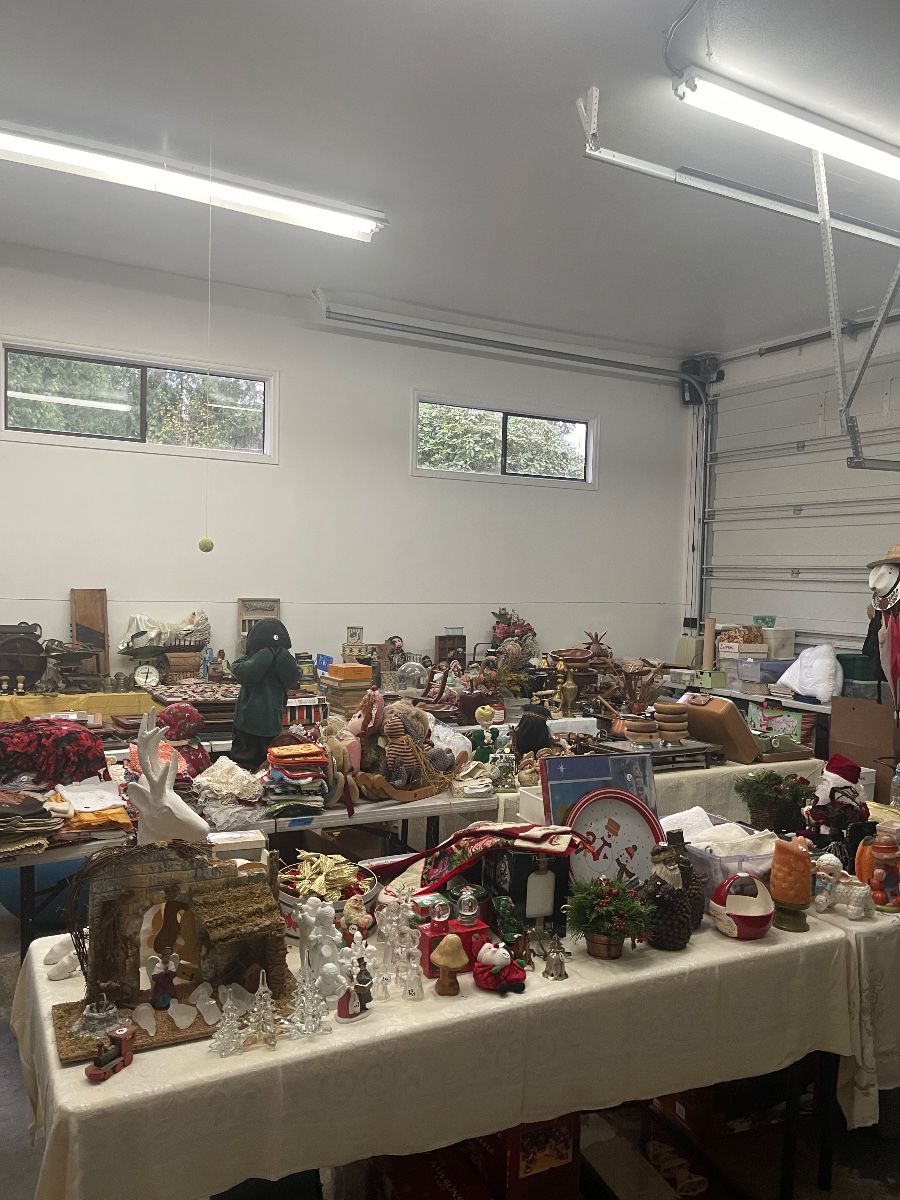 Tons of cookware, tools, furniture, Christmas stuff, artwork, dishes, records, landscape decor and tons more.